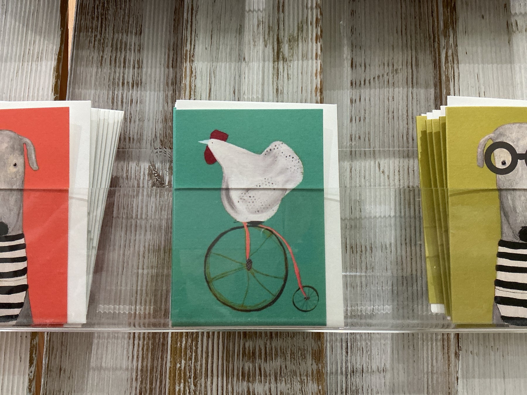 Circus Hen is a best selling design as a print, and has been translated into the dinky and square sized cards.